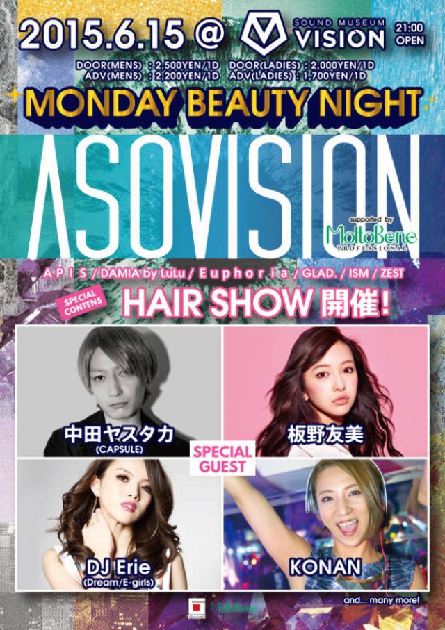 月曜のVISIONを舞台にしたパーティー「ASOVISION」が、豪華ゲストと人気サロンを迎えてMONDAY BEAUTY NIGHTとして6月15日(月)にスペシャル開催!