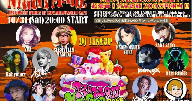 賞金総額は200万円相当のハロウィン仮装コンテスト!?マドモアゼルユリアに増田セバスチャン、湯川正人、KSUKE、banvoxまで、豪華DJが13名集結の最強ハロウィンパーティ開催決定!