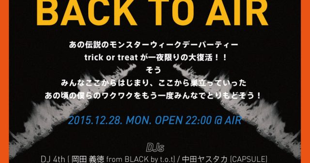 伝説のモンスターウィークデーパーティー『trick or treat』が 代官山・AIR「最期の月曜日」に一夜限りの復活!