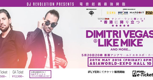 Dimitri Vegas & Like Mike香港公演チケット販売開始! 会場から徒歩2分のホテルパッケージも展開!