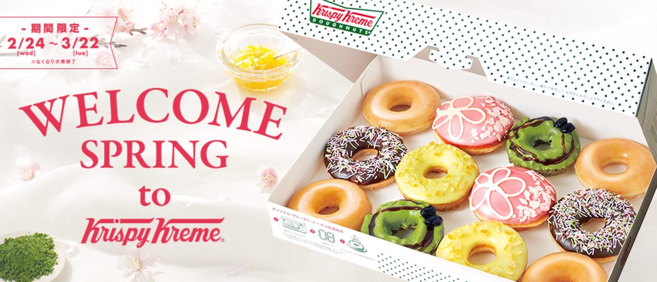 クリスピー・クリーム・ドーナツは、春の 行楽シーズンに向けて、同社初となる “ゆず”を使用したドーナツを含む、和素材ドーナツ3種、および、KKD 初のほうじ茶ドリンクとして『ほうじ茶ラテ』と『ほうじ茶(雁ヶ音入り)』、さらに春限定のドーナツアイスを2月24日(水)から期間限定で販売。