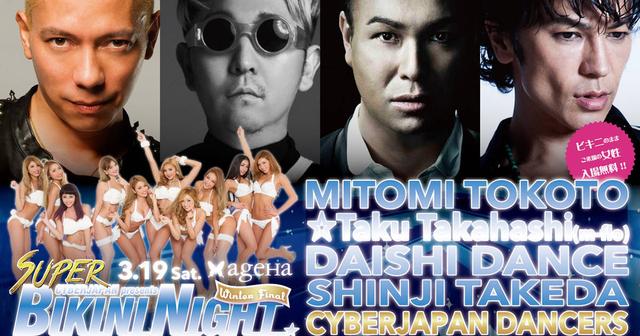 CYBERJAPANのビキニナイトがageHaで冬シーズンのファイナルパーティーを開 催!☆Taku TakahashiとDAISHI DANCE、武田真治をゲストに迎え圧倒的な盛り上 がりで冬を吹き飛ばす!