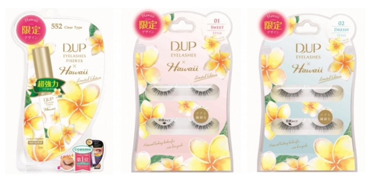 化粧品輸入製造の株式会社ディー・アップは、ハワイをイメージしたスペシャルパッケージの“つけまつげ接着剤”『ディーアップアイラッシュフィクサーEX552 Ver.H』と“つけまつげ”『ディーアップ アイラッシュ HAWAII LimitedEdition(全2種類)』を、5月16日より全国のバラエティショップ、ドラッグストアにて数量限定で発売いたします。