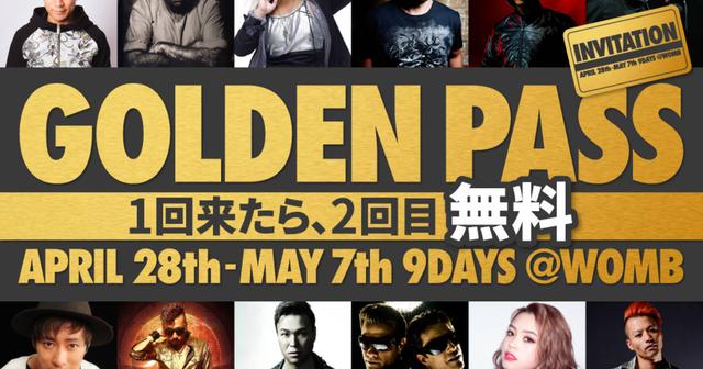 WOMBのゴールデンウィークは、毎年恒例となってきたGOLDEN PASSを今年もプレゼント!1回来たら2回目無料のゴールデンパスで、お得に遊んじゃおう!