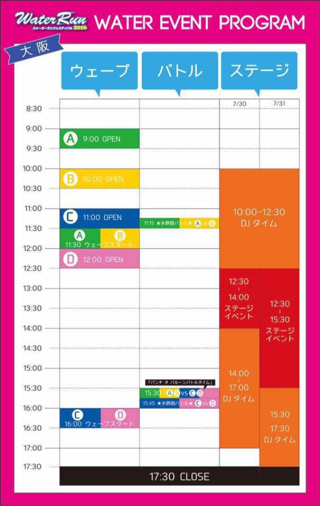 30日、31日に開催される水かけファンランイベント「ウォーターラン」の大阪会場チケットは本日が最終日!ご購入はお早めに!