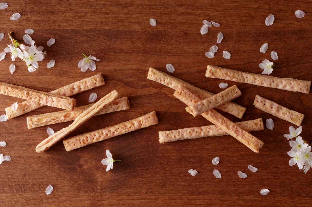 焼き上げたパイ生地は約1,000層。サクッとした食感のパイに、特殊な技術で奥までチョコレートを染み込ませ、新食感の「しとサク」を生み出しました。フレーバーは、チョコレート味の「ショコラ」、静岡県産の抹茶をふんだんに使用した「抹茶チョコ」に加え、静岡県・松崎町産の桜葉漬をパイに練り込み桜風味のチョコレートをマッチさせた「さくらチョコ」が春季限定で登場します。