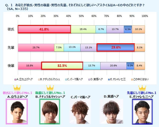 【1】関係別「男性にして欲しいヘアスタイル」彼氏はかっこよく「立ち上げ」、先輩は知的な「オシャレ七三」、後輩ならかわいい「マッシュ」