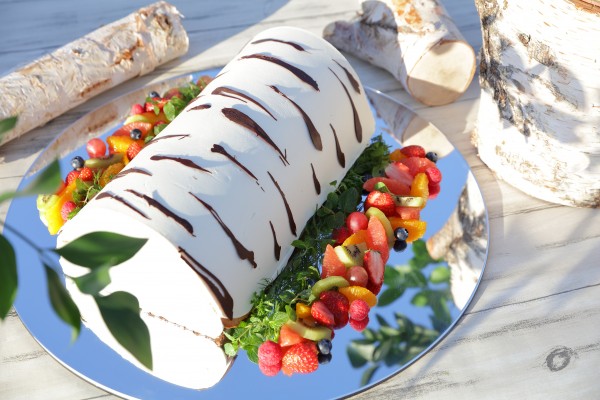 白樺の木をイメージしたオリジナルケーキです。白樺の木を模したケーキを切ると中からはほんのり甘い「白樺樹液のジュレ」が出てきます。ケーキの味わいは、北海道を象徴するチーズやハスカップです。