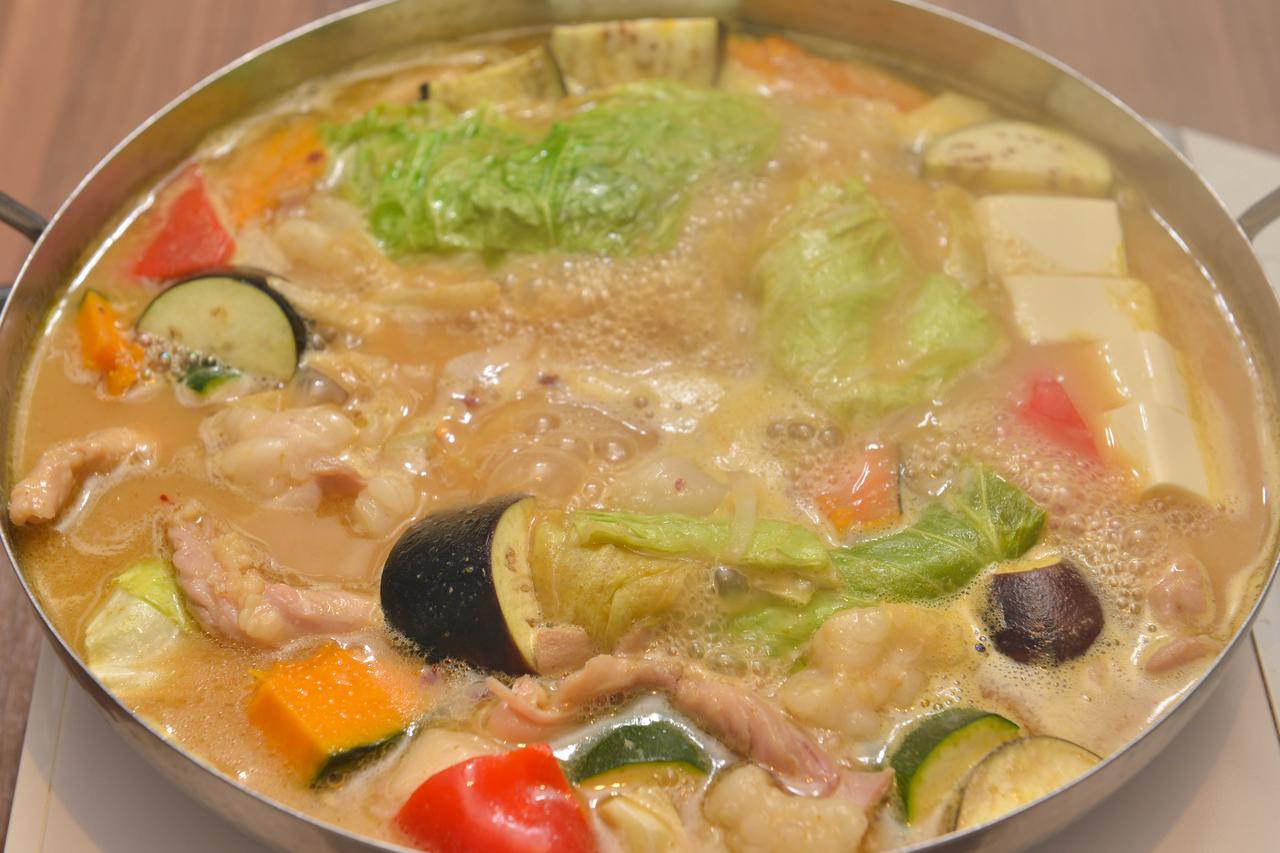 「米麹甘酒の発酵もつ鍋~グリーンカレー風~」