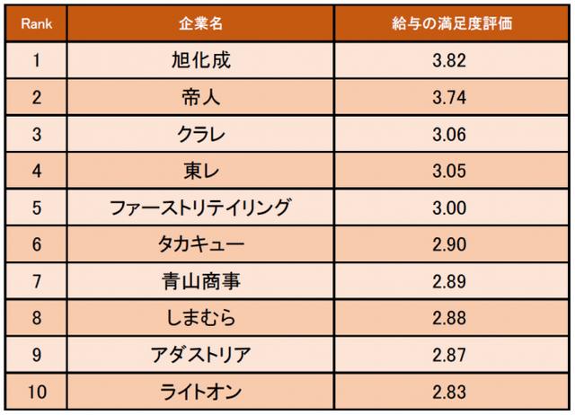 年間2000万人が訪れる企業口コミ・給与明細サイト「キャリコネ」は「繊維・アパレル業界の“給与の満足度が高い企業”ランキング」を発表しました。繊維・アパレル業界に属する企業をピックアップし、キャリコネのユーザーによる「給与の満足度」評価の平均値が高い順にランキング、トップ10は次の通りです。