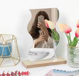 特にSNSで人気な、ユニークな形のビーンミラー。スタンド付きで実用的なだけではなく、お部屋のアクセントにも。