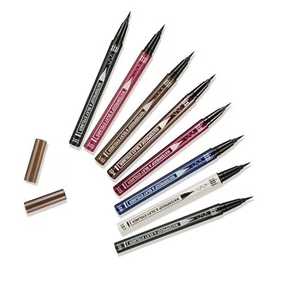 レッド系、ブルー系など様々なカラーが揃う、ウォータープルーフのアイライナー。