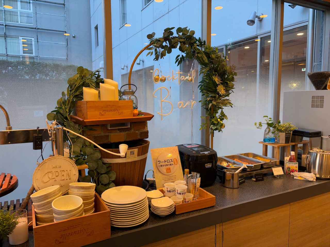 スーパーホテルPremier赤坂の2階には、ホテルの朝食会場があり、12時〜18時の間は宿泊者以外も利用できるスペースとして解放されています(利用時には1000円必要)。