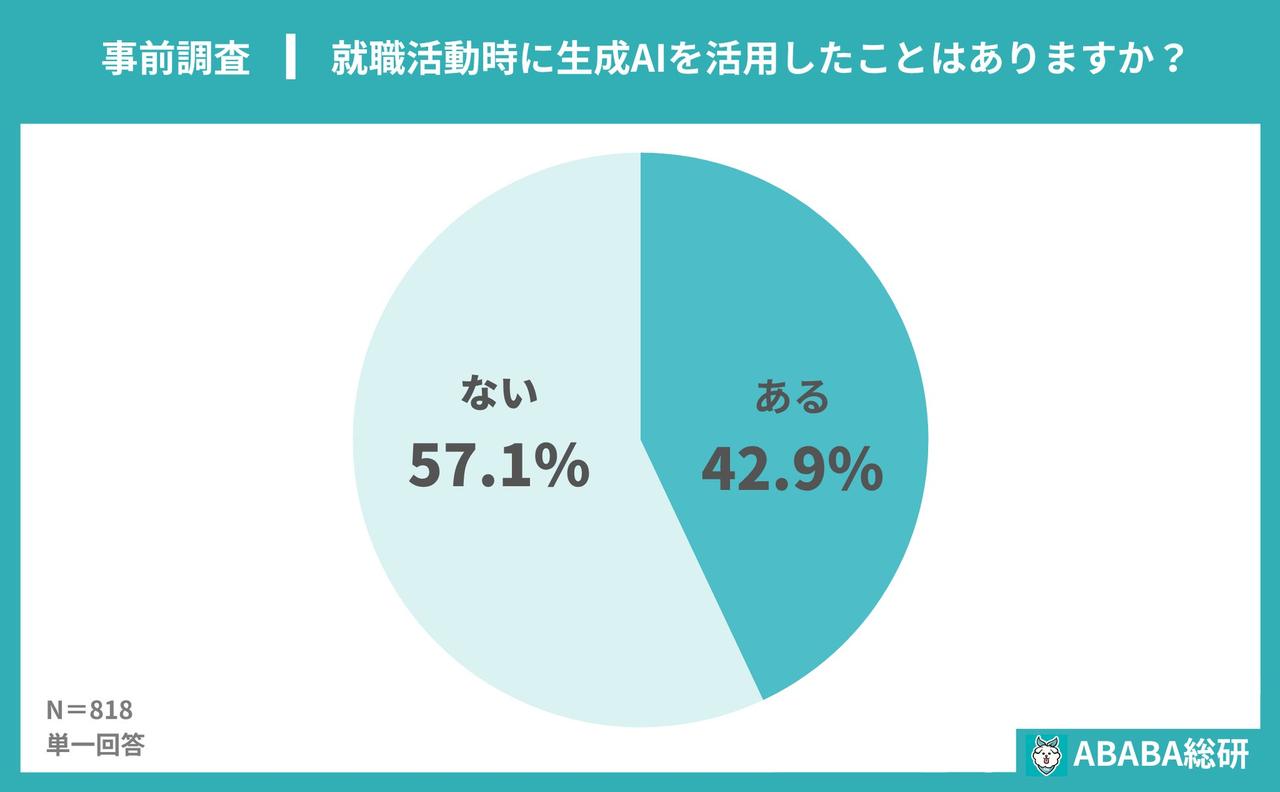 株式会社ABABAが2026年3月卒業予定の大学4年生を対象に行った調査によると、なんと約半数の就活生が就職活動に生成AIを活用した経験があることが分かりました。もはや、就活における生成AI活用は当たり前になりつつあるのかもしれません。