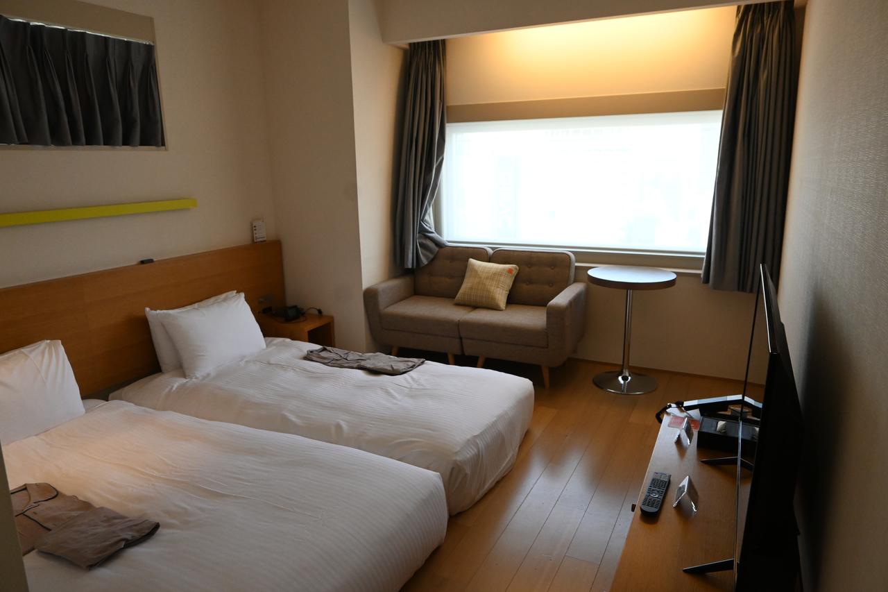 今回宿泊したのは「エグゼクティブフロア フローリングツインルーム」。靴を脱いでくつろげるスタイルで、ローベッドが2台設置されています。ソファや収納スペース、テレビが備わり、二面の窓からは銀座の街並みを見渡せる開放感ある客室です。