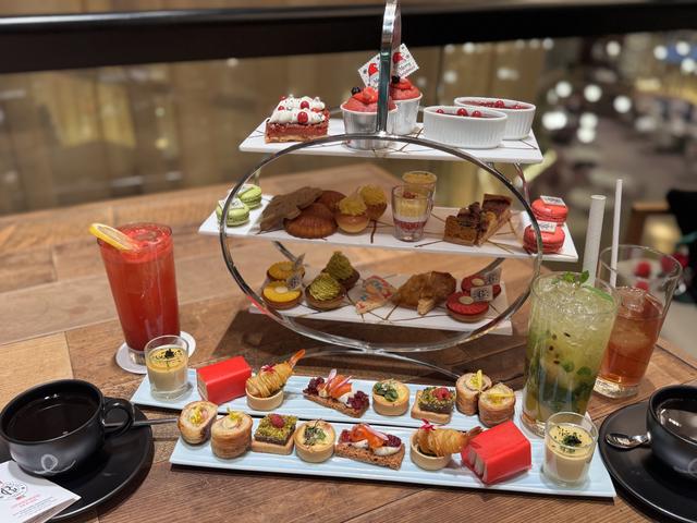 席に着くと、まず目の前に現れるのはアフタヌーンティースタンド。そこにはすべてのスイーツが美しく並べられ、まるでホリデーシーズンの宝石箱のような光景が広がります。ひとつひとつ丁寧に仕上げられたスイーツがスタンドを彩り、これから始まる特別なティータイムへの期待を一層高めてくれます。