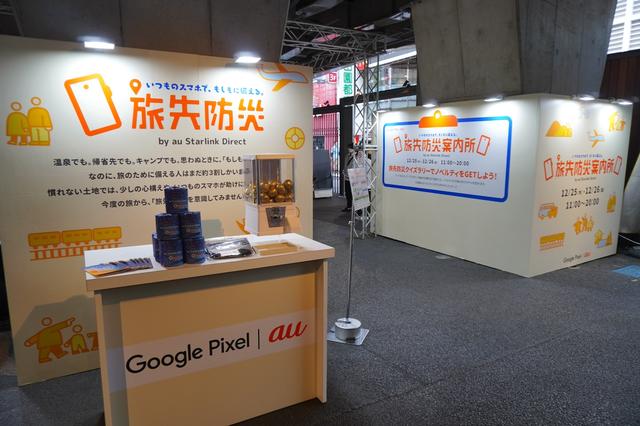 イベントが開催されたのはクリスマスでもある12月25日、そして次の日の26日の2日間。会場は旅先防災体験エリアとスマホ体験エリア、ノベルティエアリアがあります。ブースをまわって、クイズラリー用紙の埋めていくとノベルティ引き換え所でガチャを回してギフトがもらえるなど楽しみながら学べる工夫もされていました。