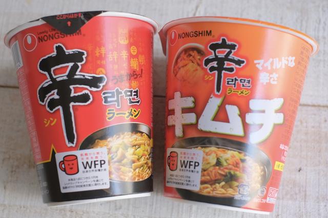 『辛ラーメン』はスープ、『辛ラーメン キムチ』はスープとかやくを麺の上に開け、