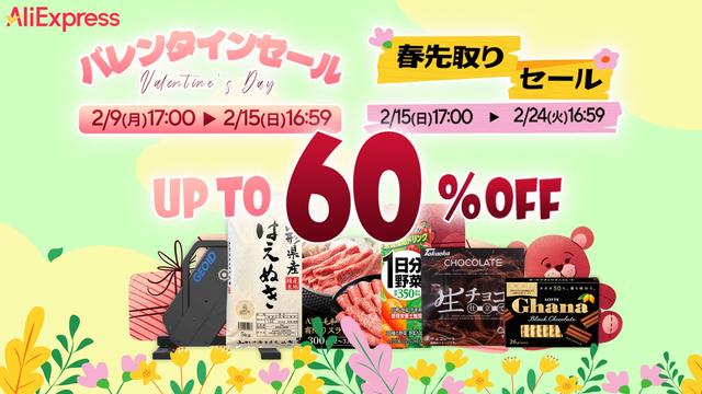 グローバルECプラットフォームのAliExpress(アリエクスプレス)が、2026年2月9日から2つの大型セールを連続開催します。最大60%オフとなる「バレンタインセール」と、春のレジャー需要を見据えた「春先取りセール」を通じて、幅広いカテゴリーの商品をお得に購入できるチャンスです。あわせて、日本向けサイトでは食品カテゴリーの展開も拡充。日常使いの商品まで、より身近に選べるECへと進化しています。