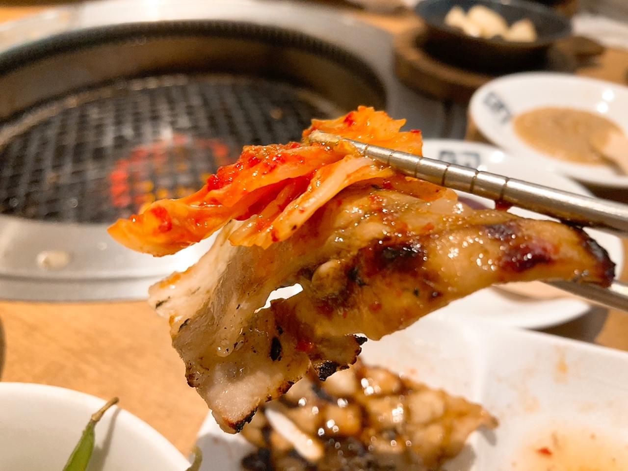 そして、食べ放題がスタート(※店舗・時期によって内容が一部異なる場合があるようです)。まず驚いたのは、ラインアップがすごい!とんタン・カルビ・ハラミ・ホルモンなどの定番焼肉をはじめ、「豚カルビのはちみつ黒胡椒焼き」などの創作焼肉のほか、キムチやおつまみ・サラダまで、とっても幅広いんです!