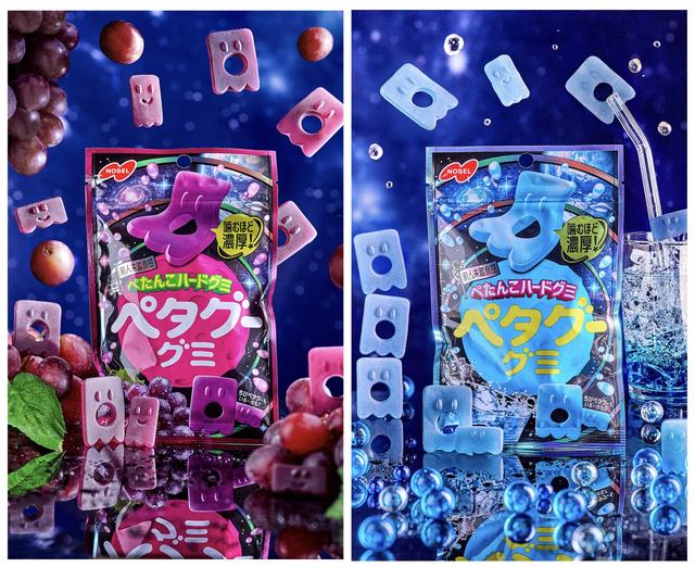 パッケージデザインは、「ペタグーグミ」の世界観である「宇宙」のテイストをより濃く反映した「ペタグーグミ」ならではのユーモアを感じていただけるデザインに刷新し、味わいについては、「ひと噛み目から感じられる濃厚さ」を追求し、グレープ味の噛むほどに芳醇な香りと甘みが広がり、つい手が伸びてしまうようなおいしさに仕上げています。