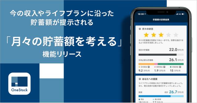 野村の資産管理アプリ「OneStock(ワンストック)」に新機能「月々の貯蓄額を考える」提供スタート