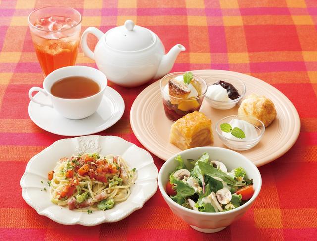 アフタヌーンティー・ティールームは、選べるハーフサイズのパスタやスイーツとミニサラダに、追加オーダーが可能な紅茶がセットになった夕方17時から限定の「ナイトアフタヌーンティーセット」を、アフタヌーンティー・ティールームの限定店舗で発売しています。