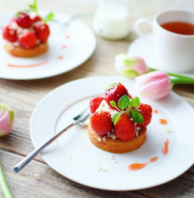 苺を浮かべて愉しむ紅茶や春色のモンブランなど