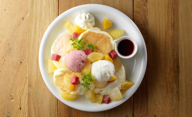 秋の新作は、香ばしいキャラメルアイスと、ビターなショコラアイス(カカオ70%)を楽しむパンケーキです...