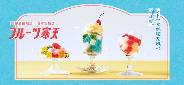 砂糖と寒天で作られた琥珀糖は日本の伝統的な和菓子として、昔から親しまれてきました。外はシャリッと、中はプルッとした食感が楽しく、見た目の美しさから、最近では“食べる宝石”と呼ばれ、InstagramやTikTokなどSNSでも話題となっています。日本百貨店で販売される「フルーツ寒天シリーズ」は島根県出雲市にある岡伊三郎商店さんと一緒に開発したオリジナルの商品です。純喫茶やパーラーにある昔ながらのメニューをイメージした味の琥珀糖を、レト...