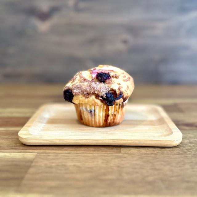マフィンに使用されるのは、農園で収穫された完熟ブルーベリー。果実の甘酸っぱさと、混ぜ込まず“そのまま”加えたクリームチーズの濃厚な風味が絶妙にマッチします。試作を重ねた生地はしっとり感が特徴で、「まるでケーキのよう」と評判です。
