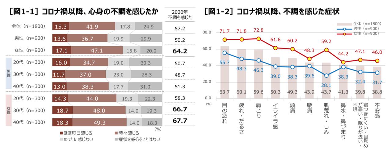 あなたもあてはまる?20代~40代の男女1,800人にコロナ禍で感じた不調を調査