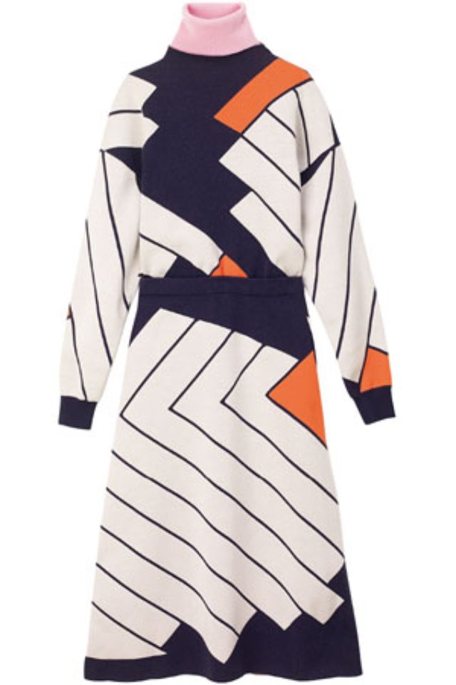 お洒落心を喚起するのは、まるでアートを身につけたようなプリントや色使い。そのなかで秋のスタートに選びたいのは、ジオメトリックなパターン。直線を巧みに配した抽象画のようなプリントは、モノトーンの無機質な色調ではなく、深みのある秋色を選ぶのが今年らしさのポイント。70年代を意識したノスタルジックなムードなら、ちょっとクセありな配色もおしゃれに見せてくれる。全身は......と躊躇するなら、靴やバッグ、ストールなど小物での一点投入から始めてみては?